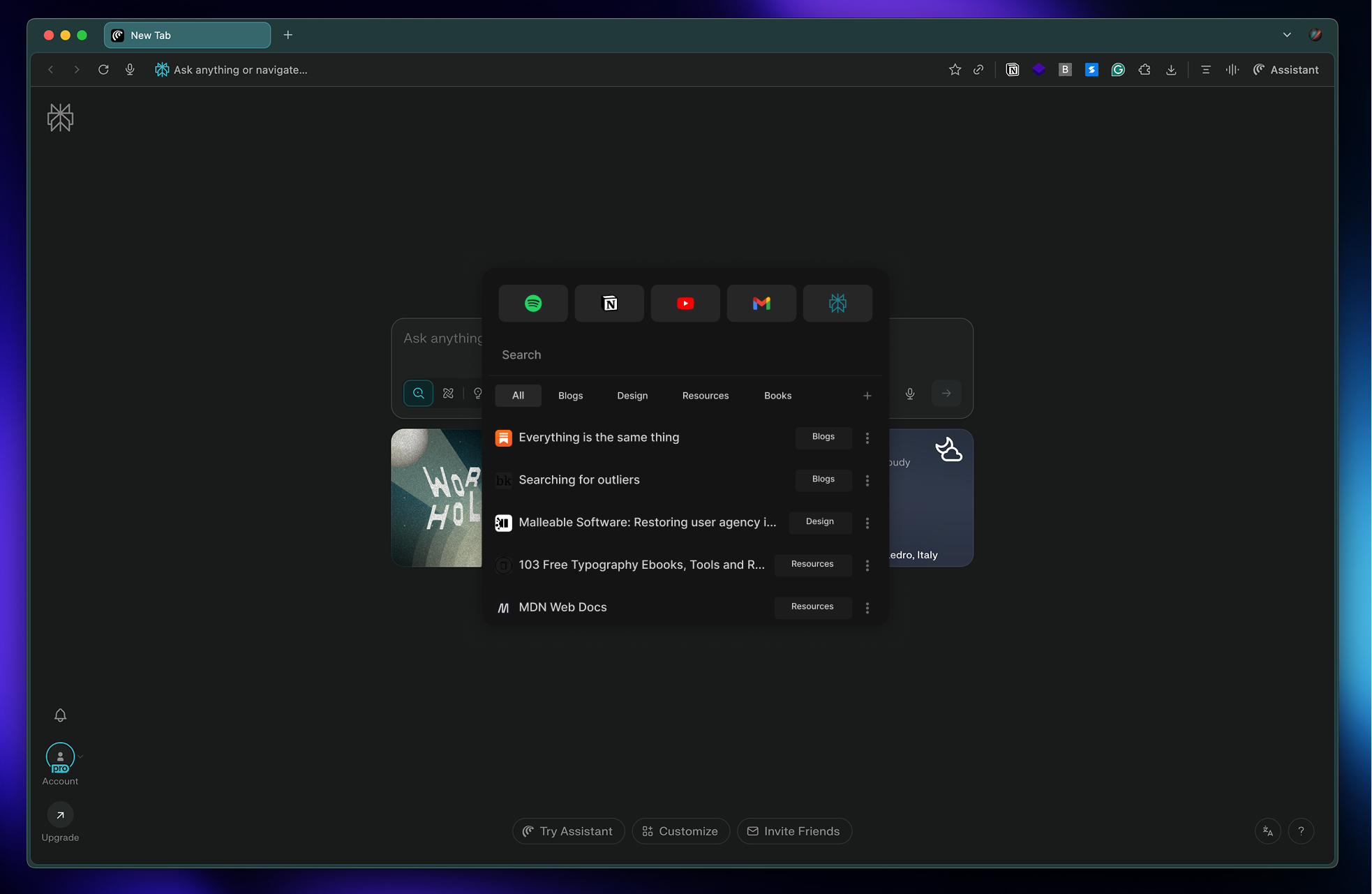 The extension is a modal that can be opened with a keyboard shortcut and designed to be opened and browsed in a few seconds.